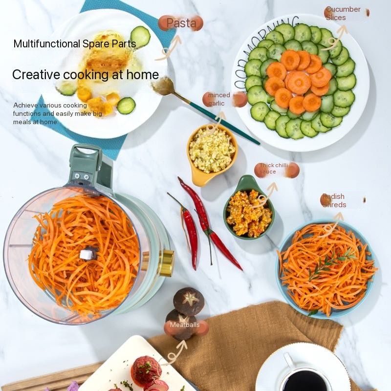 Say goodbye to tedious meal prep! This multi-function vegetable cutter doubles your kitchen efficiency! Its 11 core functions cover more than just chopping vegetables—shredding, slicing, pureeing, kneading dough, mincing meat, beating eggs, and more—all with one tap. Easily recreate restaurant-quality dishes at home, turning even novice chefs into master chefs in seconds.