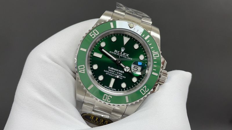 It features a signature emerald green dial with vibrant color saturation. Its premium texture embodies luxurious sophistication. The distinctive crown logo symbolizes the brand's prestige and prestige.